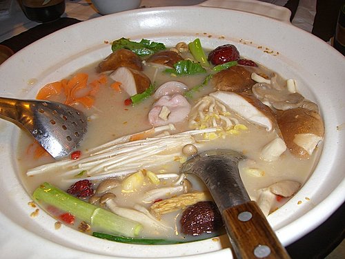另一個主打鍋是養生白味鍋,是由雞骨和大骨與數種中藥材(當歸、黨蔘、紅棗、白荳蔻)