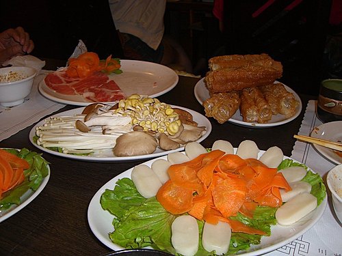 經過長時間熬煮的養生鍋....淡淡乳白色的高湯和甜美的時蔬、菇類拼盤一起下鍋