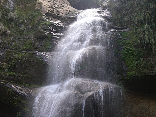 松瀧岩~我們搭遊園車(單程一人$40)到山下,再步行而上。聽園區內的工作人員說,由於之前有雨水的關係,所以瀑布較大點,看起來很美。因延路健行幾乎都是石梯步道,所以越靠近瀑布區時要小心路面濕滑。